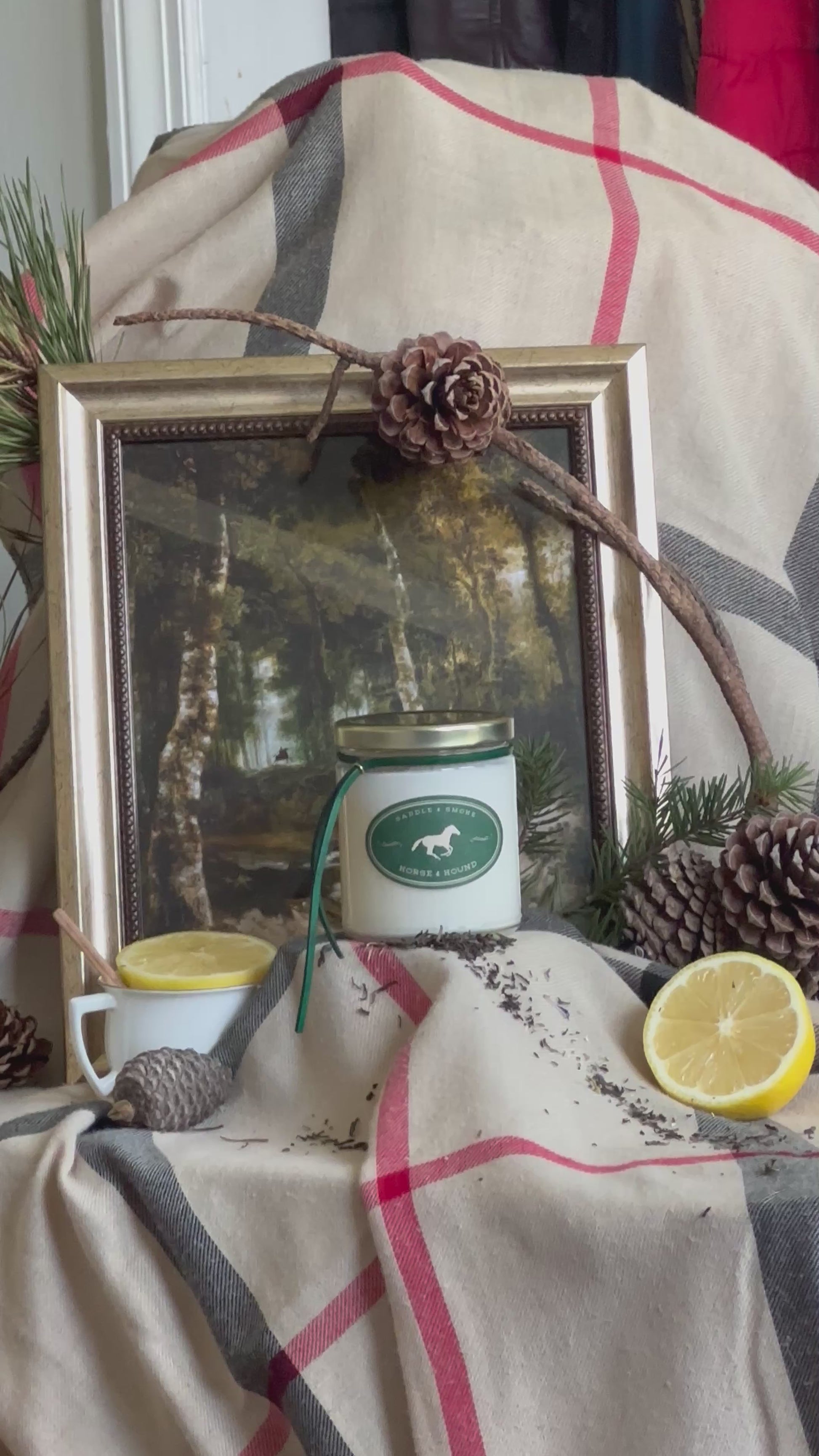 Crisp pine needles evoke the untamed spirit of the hunt, fresh and invigorating as a morning ride through evergreen woods. A heart of earl grey tea and lemon unfolds with quiet sophistication—bright citrus wrapped in the comforting steam of black tea, a nod to English parlors after the chase. Finally, the scent lingers in the warmth of cashmere amber, soft and grounding, like worn leather saddles and loyal companions resting by the fire.